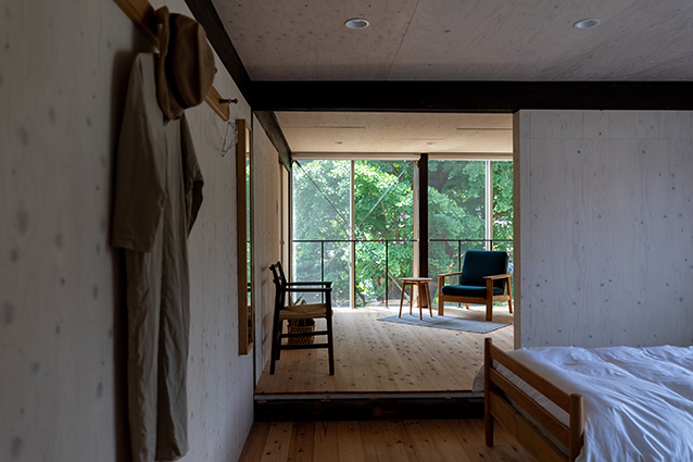 The guest room, which is located along a beautiful Japanese river, has a quality and uniqueness which only can be experienced at this wood workshop.